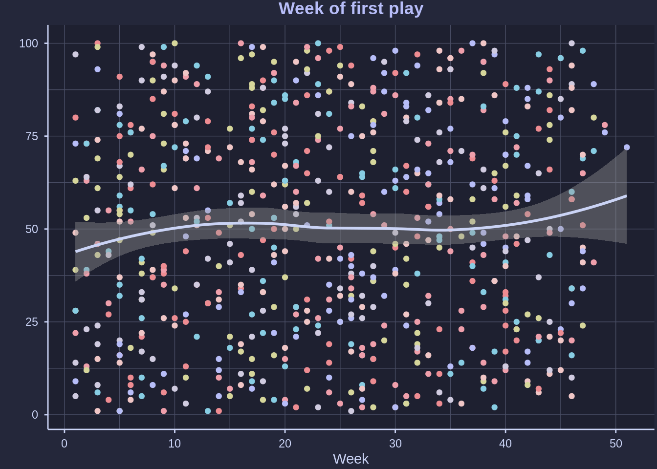 Looking at the above plots, we can see that the week of release or peak really doesn’t matter when looking at the final results.